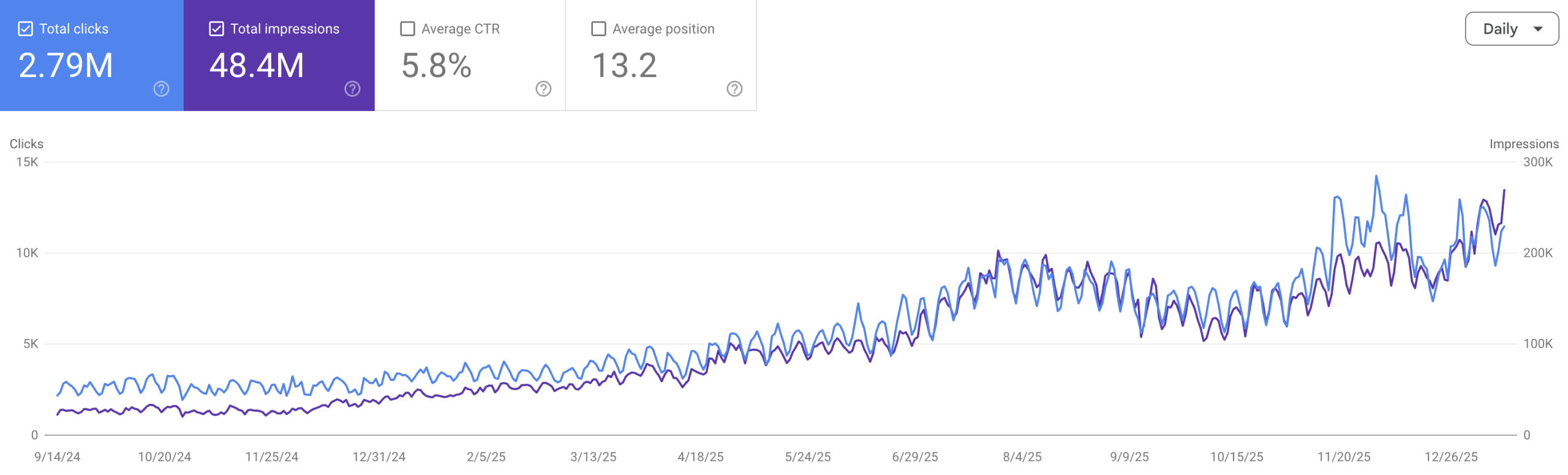 and according to Search Console
