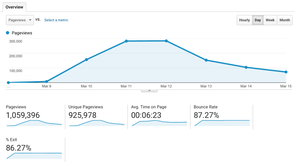 Captured viral traffic and created a site that reached one million pageviews over the course of one week.